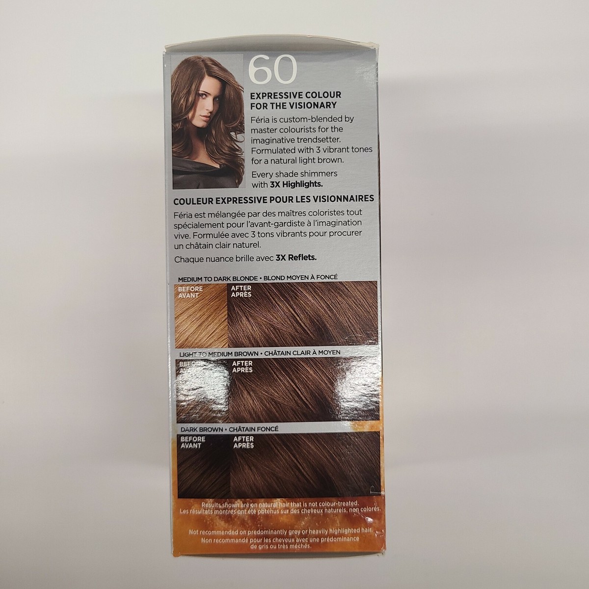 Amazon Com L Oreal Paris Feria Multi Faceted Shimmering Permanent Hair Color 60 Crystal Brown Light Brown Pack Of 1 Hair Dye Chemical Hair Dyes Beauty Personal Care
